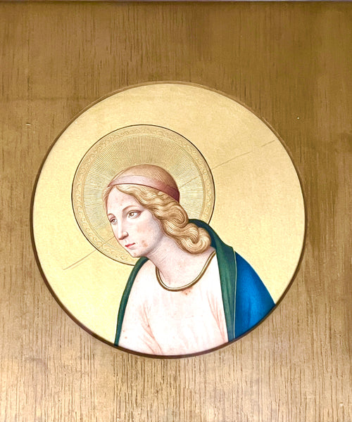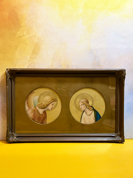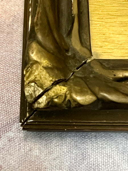 Condition: Good w/ signs of age & imperfections; Rabjohn & Morcom Framed Portrait; Imperfection on the frame (in the left upper corner) as well as scratches and loss of paint throughout the surface of the entire frame. Visible imperfection on the surface of the art (across the left facing portrait). The Rabjohn & Morcom label is on the reverse of frame; the artist is unknown.