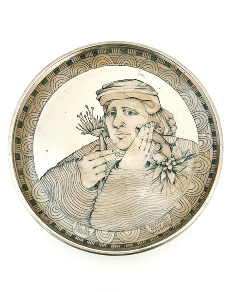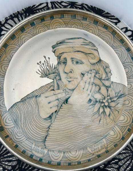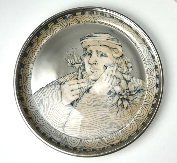 Mary Lou Higgins & Edward Higgins Ceramic Plate 1976 High Gloss Silver Glaze Portrait